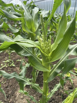 今年も、1月からスイートコーンの種を播き続けて、最初のハウスとうもろこしも順調にすくすく育って早くも穂が展開し始めました(^^)