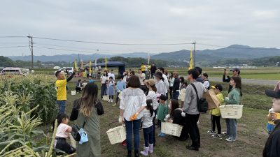 雨予報から一転、どうにか天気にも恵まれて、今年も無事にスイートコーンの収穫体験開催出来ました♪