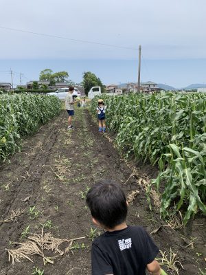 とうもろこしの収穫体験って、自分達じゃ毎日やる事なので当たり前すぎる事で感動もなくなりますが、とうもろこしの実を“バキッ”っと、もぎ取る事って新鮮な体験だよなーって、来てくれた喜ぶお子さんたち見て改めて感じますね(^-^;